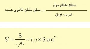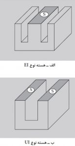 سطح مقطع هسته، سطح موثر هسته آهني است که شار مغناطيسي از آن عبورمي کند. در بعضي از ترانسفورماتورها سطح مقطع به گونه اي انتخاب مي شود که هسته سريع به اشباع برسد. اين ترانسفورماتورها در ايجاد امواج ضربه اي (پالس يا تب) کاربرد دارند. ولي در ترانسفورماتورهاي قدرت سطح مقطع هسته را به گونه اي در نظر ميگيرند که ترانسفورماتور در منطقه خطی کار کند و به توان ضريب تبديل K= N2/N1 را در کميتهاي الکتريکي اعمال کرد. در شکل هاي زیر دو نوع مختلف هسته UI و EI نشان داده شده است. اندازه سطح مقطع موثر هسته از رابطه S = K ×√P تعيين مي شود. K ضريبي است که در فاصله بين 8/ 0 تا 2/ 1 بسته به توان ترانسفورماتور تغيير ميکند. در ترانسفورماتورهاي کوچک 1.2= K و در ترانسفورماتورهاي پرقدرت 0.8= K در نظر گرفته مي شود. در رابطه بالا P توان ظاهري در خروجي ترانسفورماتور مي باشد که بر حسب ولت آمپر ( VA ) بيان مي شود. S سطح مقطع موثر هسته بر حسبئسانتي متر مربع ( cm2 ) مي باشد. براي کاهش تلفات فوکو هسته ترانسفورماتورها، ورق ورق ساخته مي شود. ورق ورقکردن هسته سبب مي شود که مقدار موثر سطح مقطع آن ها کاهش يابد. براي جبران ميزان کاهش آن از سطح مقطع ظاهري استفاده مي شود. براي تعيين سطح مقطع ظاهري از ضريب تورق 0 9/ 0 الي 95 / 0 استفاده مي شود. اگر سطح مقطع ظاهري را با S′ نشان دهيم از رابطه زیر مي توان آن را محاسبه کرد.